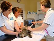Dieser Kater hat eine Blasenentzündung. Er wird mit dem Ultraschallgerät untersucht. Dieses Verfahren ist unentbehrlich bei internistischen Patienten. Es liefert ein bewegtes Bild, welche die Organstruktur, die Größe und z.T.die Funktionalität der inneren Organe (wie z.B. Leber, Milz, Därme, Harnblase, Gebärmutter, Prostata, Sehnen) wiedergibt.